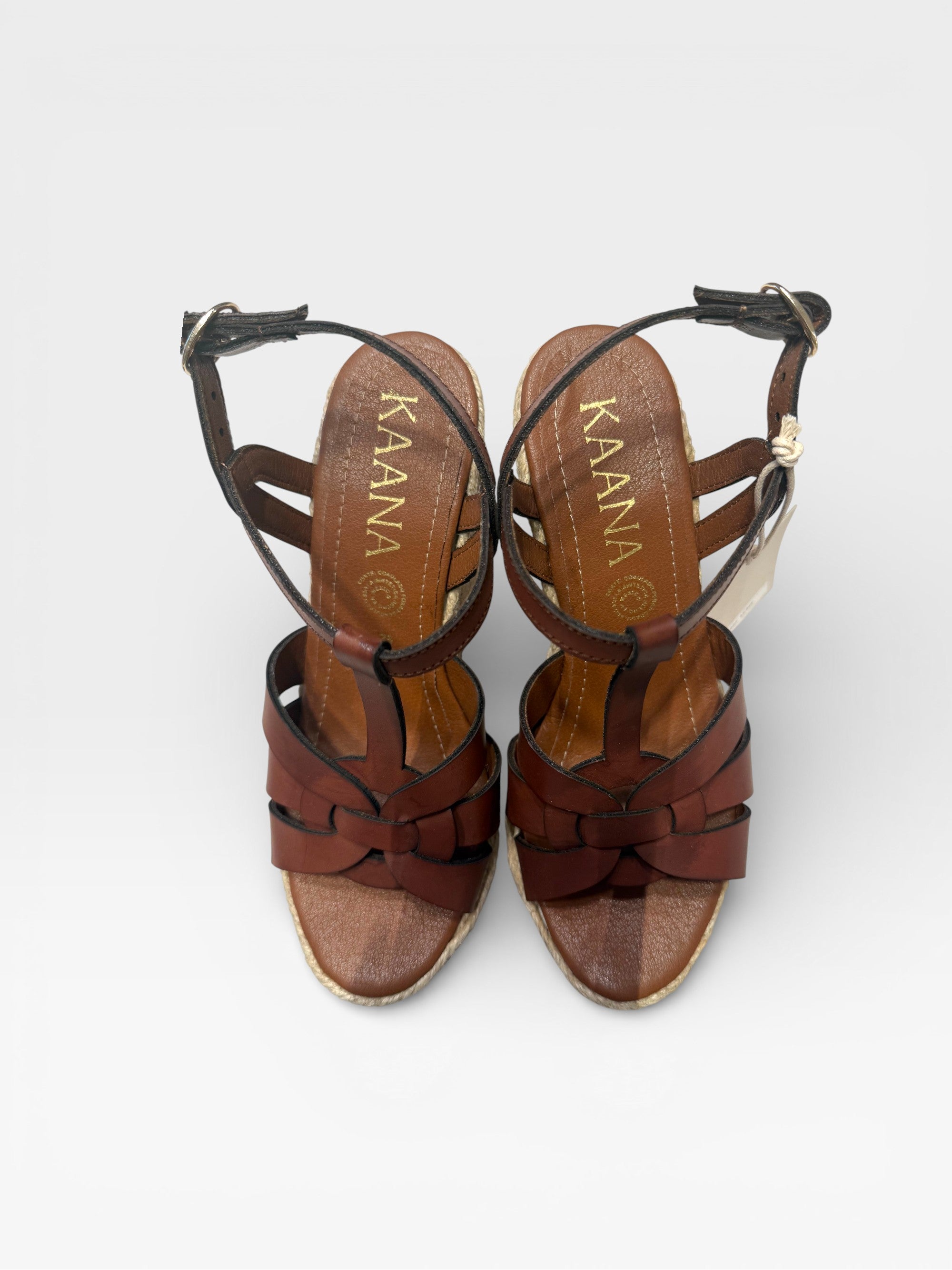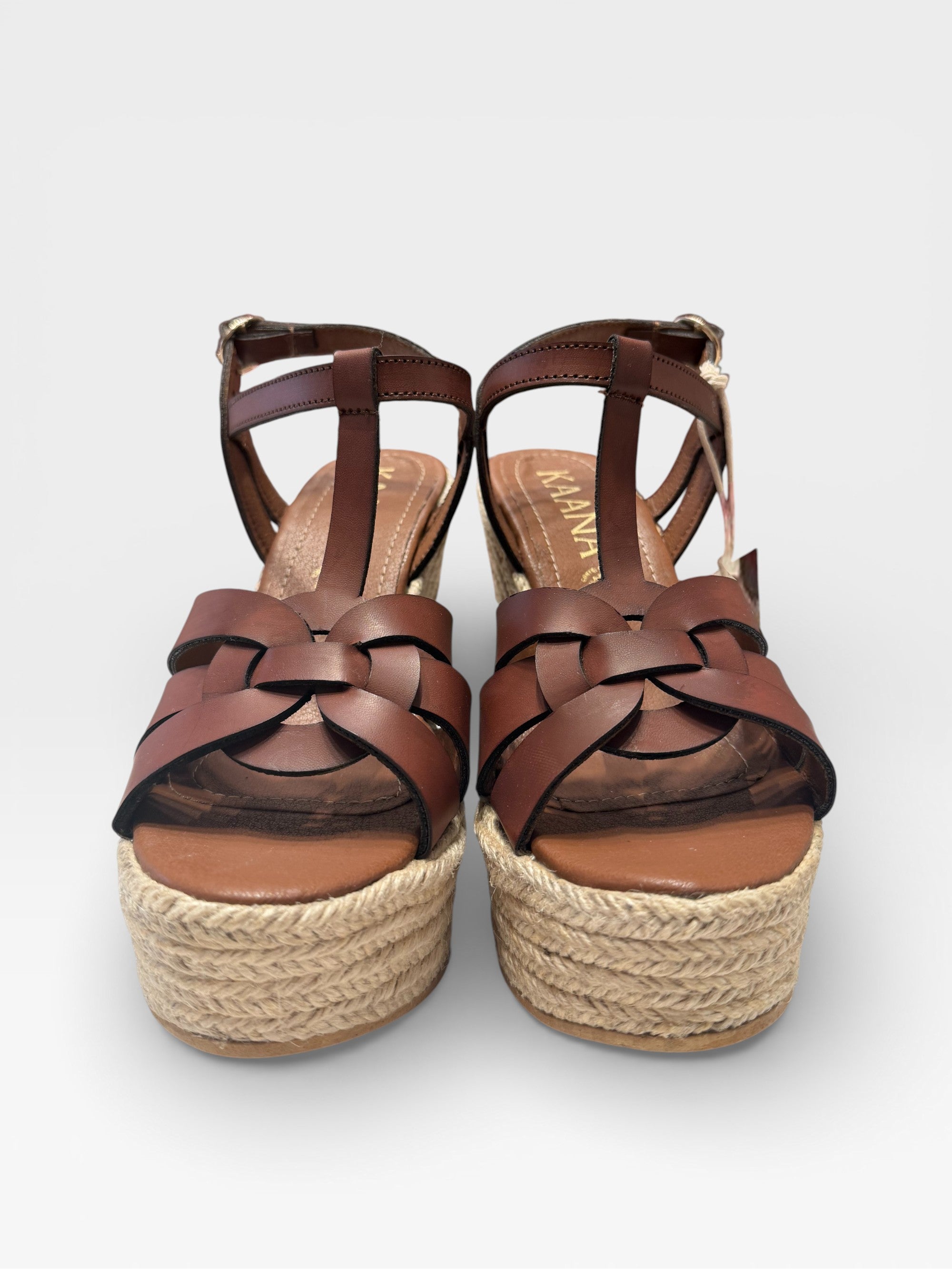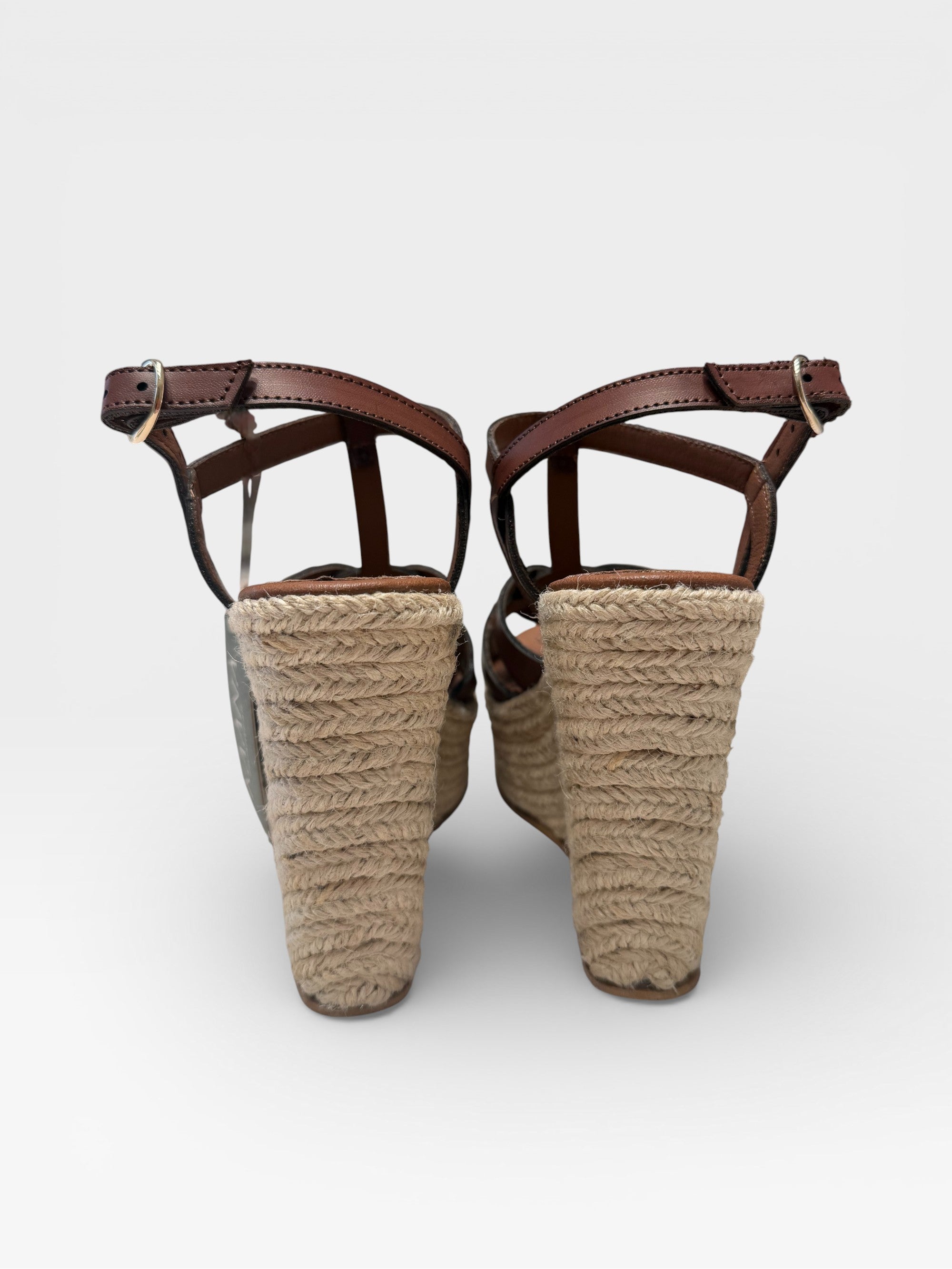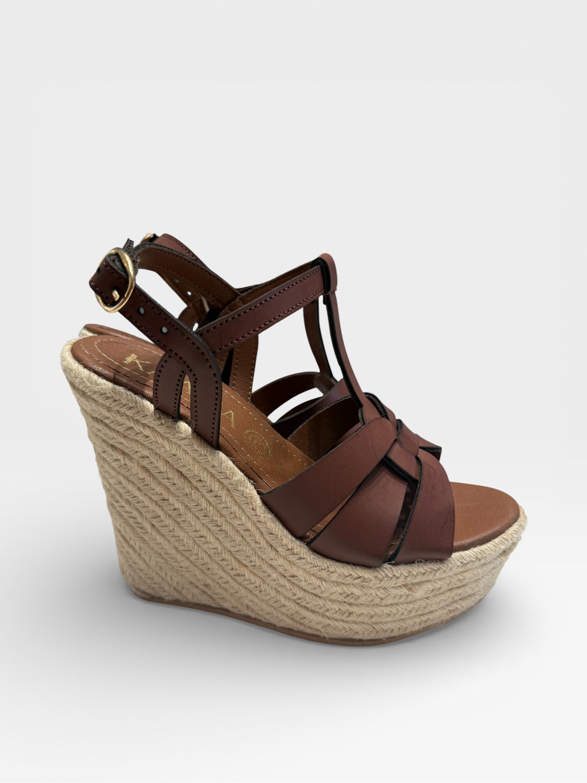 - Tacón tipo cuña forrado en yute