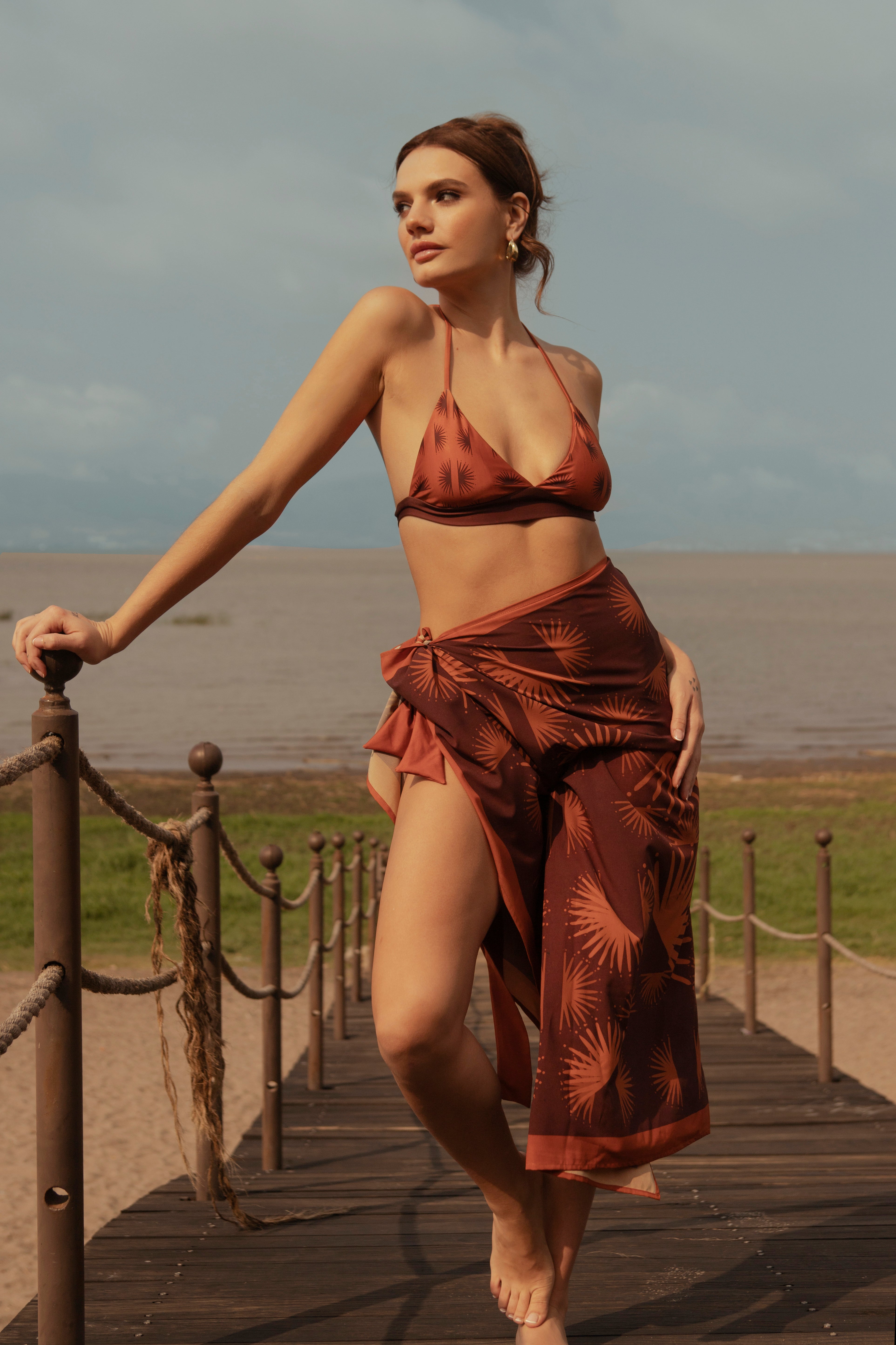Una pieza, múltiples posibilidades. El Nativa Essential Pareo de la cápsula Nativa es versátil y envolvente, con una textura ligera y un estampado cálido que refleja el alma de esta colección.